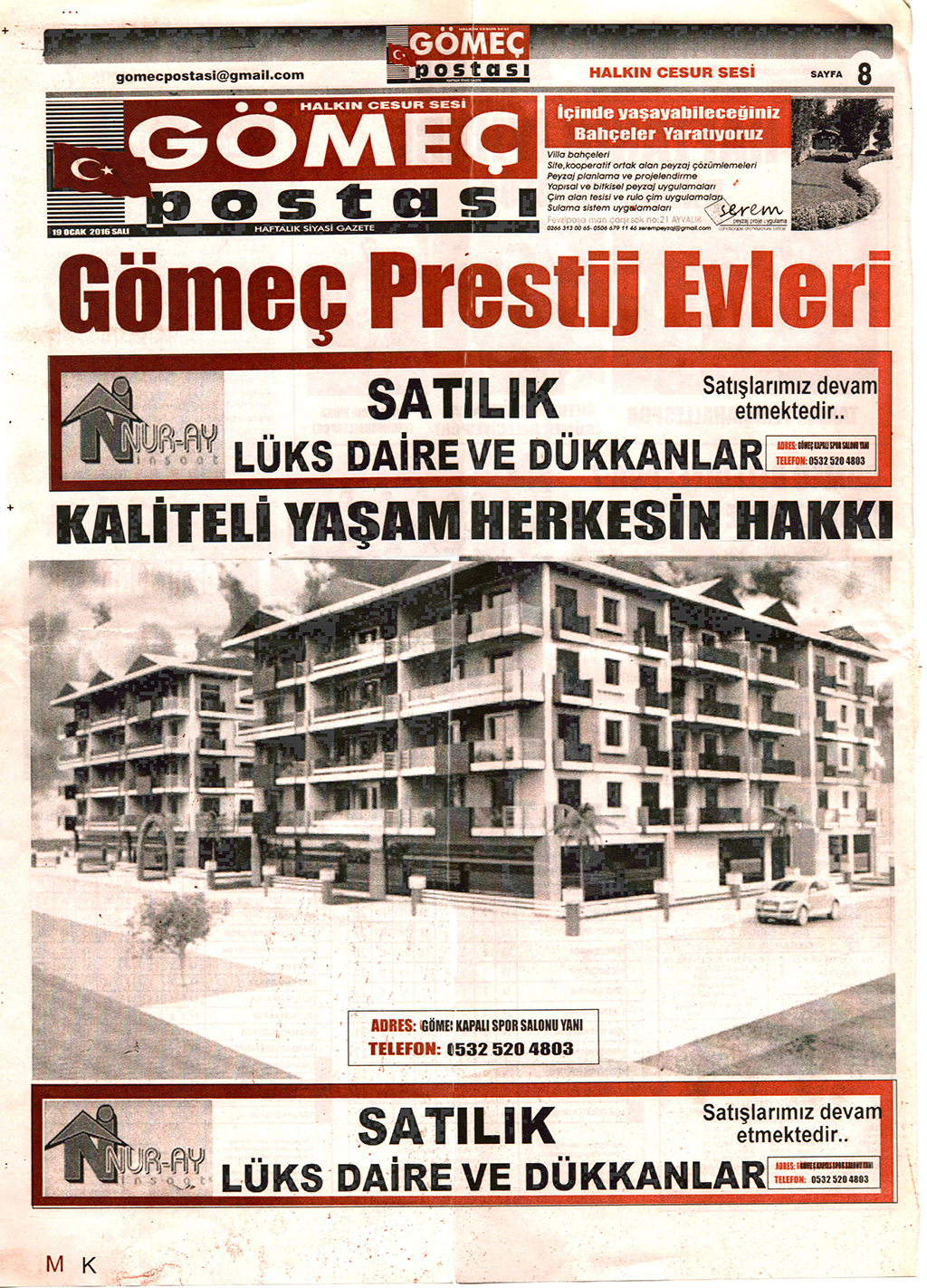 Prestij Evleri, Gömeç Postası Reklam
